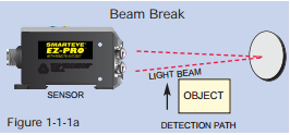 The object must break or diminish an existing light beam path between the light source lens and receiver lens — Beam Break mode (see Figure 1-1-1a).