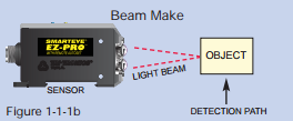 The object itself must diffuse or reflect the light beam to the receiving lens — Beam Make mode (see Figure 1- 1-1b).