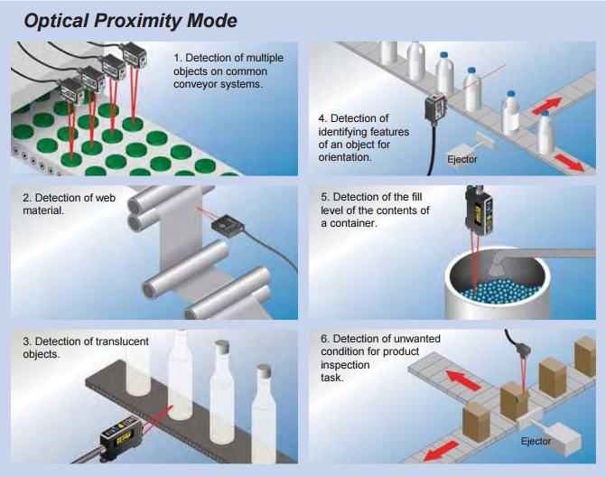 - Preferred when sensing dark-colored objects in the proximity (Beam Make) mode, i.e., black, blue, green, etc.