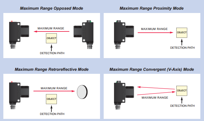 - Provides the longest possible sensing range in either Beam Make or Beam Break sensing modes